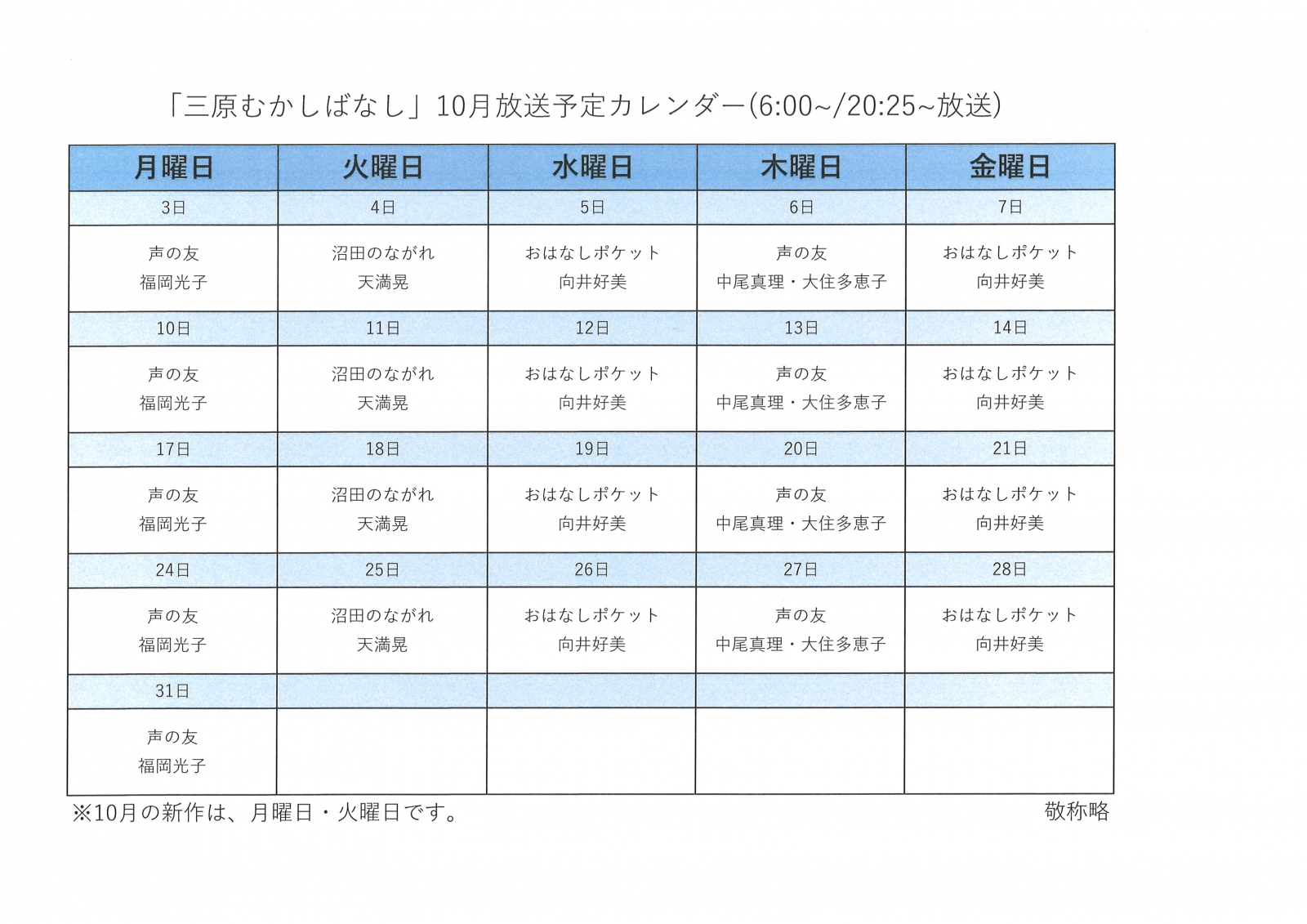 昔から伝わるお話を読み聞かせボランティアの皆さんのご協力により放送している番組です。三原の貴重なアーカイブスです。是非、お聴きください。