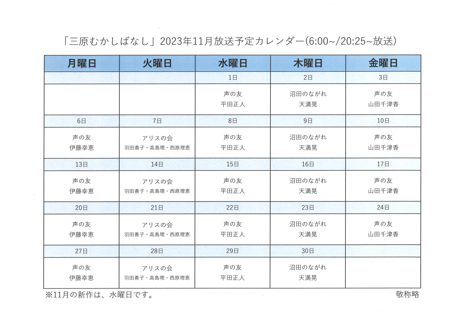 昔から伝わるお話を読み聞かせボランティアの皆さんのご協力により放送している番組です。三原の貴重なアーカイブスです。是非、お聴きください。